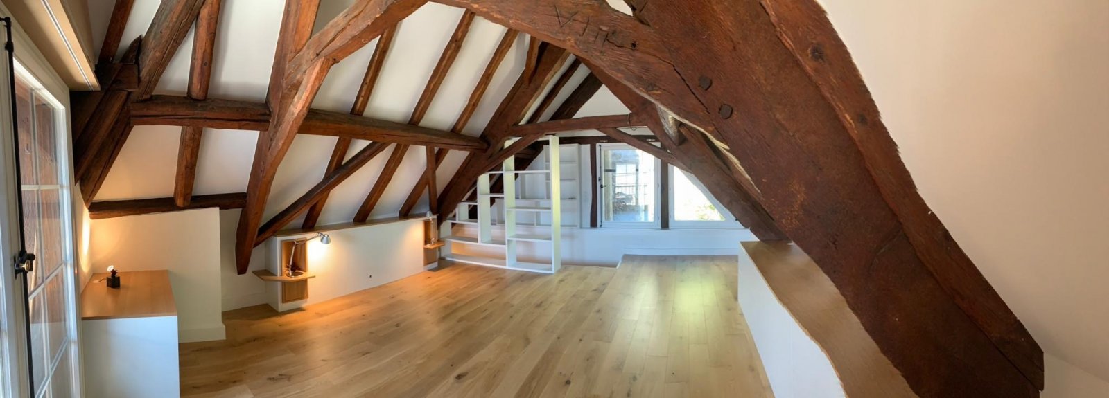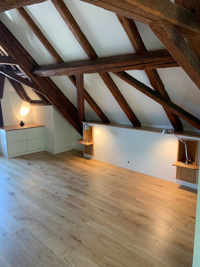 Un coup de neuf dans une maison villageoise de Saint-Saphorin ! Transformation et réaménagement des combles. Création de nouveaux agencements et de rangements divers. Un gain de place et de lumière.